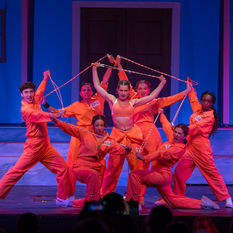 "There was quite a bit of humor in his interaction with Meg Brockie, the milkmaid (Lily Ramras). Meg plays the flirtatious woman who is looking for the “love of her life.” She sets her sights on Jeff, but to no avail. She also shines when she sings about her parents’ wedding. She was a natural in that role." -LAURA GROSS-HIGGINS